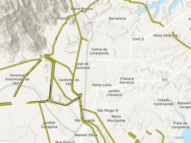 Description: Apresentamos a camada de Linhas de Transmissão do Município da Serra/ES. Esta camada é decorrente do Serviços de Aerolevantamento, Restituição Planialtimétrica, elaboração de ortofotocartas, revisão e implantação da rede de referência cadastral municipal com implantação de marcos geodésicos, firmado sob Contrato nº 252/2014, Processo nº 51.360/2014 e Concorrência nº 012/2014. A camada e suas informações são de responsabilidade do Departamento de Geoprocessamento, Subsecretaria de Tecnologia da Informação, Secretaria Municipal de Inovação, Ciência e Tecnologia, Prefeitura da Serra/ES.